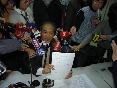 臺中市選委會新任代理主委薛秋發(中)3日現身選委會臨時委員會議,先以主委身份主持會議,接著又向委員會提出辭職書,請辭主委。臺灣“中央社”記者郝雪卿攝