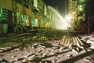 臺灣“中油”高雄煉油廠昨晚發(fā)生氫氣爆炸,現(xiàn)場滿目瘡痍。(聯(lián)合報圖)