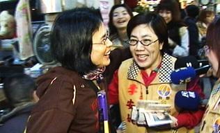 為了替臺聯黨選情加溫,李安妮7日一大早到自家附近熟悉的傳統市場拜票,與攤販們搏感情爭取支持。(東森新聞圖)
