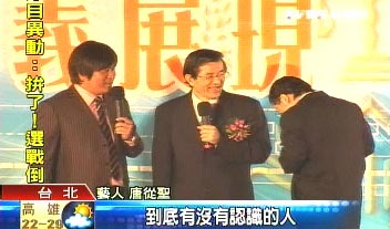 中國臺灣網1月11日消息 據臺灣TVBS電視臺報道,今天是臺灣地區“司法節”,由于正逢“立委”選舉期間,臺當局“法務部”特別安排15名檢察官演出反賄選舞臺劇,還請來模仿陳水扁維妙維肖的藝人唐從圣和胡瓜,就反賄選議題自由發揮,兩人幽默的對談,讓現場氣氛輕松不少。
