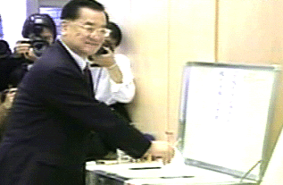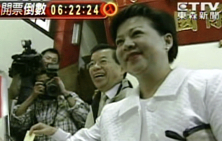 上午9時40分左右,民進黨2008參選人謝長廷和夫人游芳枝來到高雄一投票所開票。