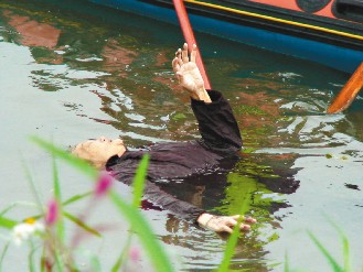 消防隊員認為老婦已溺斃,坐著橡皮艇打算將“浮尸”撈上岸。當快要接近時,突然看見老婦眨了眨眼,手微微動了一下,隊員嚇得大喊。