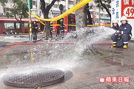 臺(tái)北市發(fā)高壓電設(shè)備井蓋傷人意外,警消人員趕赴現(xiàn)場(chǎng)灑水降溫。
