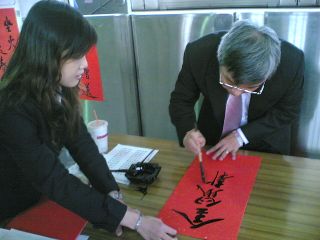 臺鐵宜蘭運務段指出,宜蘭火車站推出的“過年坐火車、免費送春聯(lián)”活動期間,每天上午由精于書法的運務段副段長林清泉在宜蘭火車站候車室現(xiàn)場揮毫,供民眾索取。