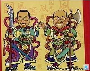 民進黨Q版農民歷有玄機 謝長廷蘇貞昌成門神(圖)
