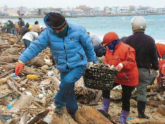 澎湖縣政府今天清晨發(fā)動(dòng)大批公務(wù)員到澎湖海邊清理凍死魚尸,臺(tái)灣《聯(lián)合晚報(bào)》記者肇瑩如攝