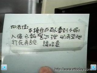 屏東警方來到李姓竊賊住的五層樓公寓,原本在樓梯間的墻上貼有一張警告紙條,上面叫小偷別再來偷了,也提醒了住同棟樓的住戶這里有竊賊光顧過,已經報警處理,還叫住戶再發現小偷先打死再說。