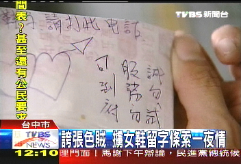 竊賊偷走女鞋后,還留下猥褻字條。(圖片來源:TVBS)