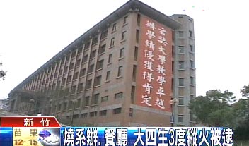 臺灣大學生不滿系主任拒寫推薦信 三度縱火校園(圖)