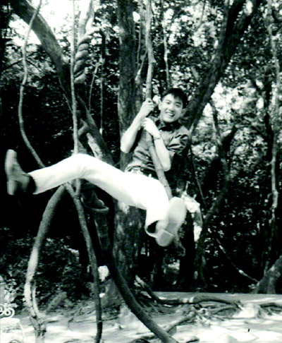 好動中學生:高中時代的馬英九,出游時留下了這張蕩樹藤的照片,難得展現俏皮的一面。