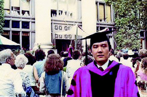 哈佛畢業:1981年3月,大女兒馬唯中四個月大時,馬英九獲美國哈佛大學法學博士學位。在哈佛四年多的日子,是他一生最充實的時光。