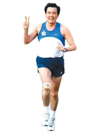 跑出新紀元:馬英九喜歡運動,慢跑是他長期的習慣,招牌短褲“一路跑來,始終如一”。