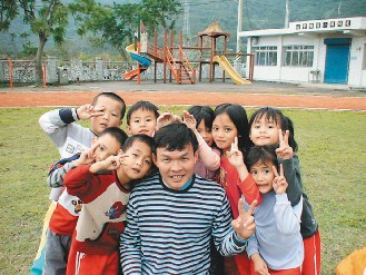 吳明億飛行103公里,降落地花蓮見晴小學(xué)學(xué)生的熱情笑容是最大的獎勵。(臺灣《聯(lián)合報(bào)》圖片)