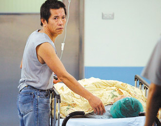 男童父親在醫院看護受傷的兒子。(圖片來源:臺灣《聯合報》)