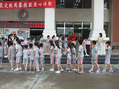 這是東莞臺商子弟學校全校學生為汶川災區募捐的溫馨感人一幕。
