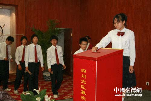 據(jù)悉,該修學(xué)旅行團(tuán)58名同學(xué)大多數(shù)是臺(tái)胞子女,他們從儉求學(xué),但心系四川地震災(zāi)區(qū)。捐贈(zèng)儀式上,所有同學(xué)集體為四川震災(zāi)遇難同胞默哀一分鐘,然后逐個(gè)把自己的一份愛(ài)心投入捐款箱中。