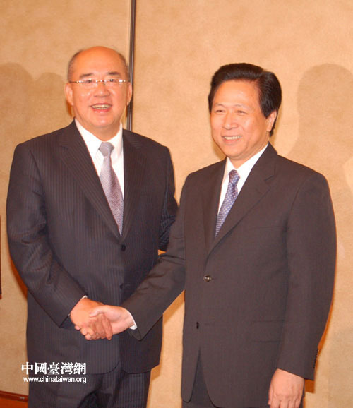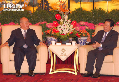 5月26日,中共江蘇省委書記梁保華在南京會(huì)見中國國民黨主席吳伯雄。 中國臺(tái)灣網(wǎng)記者田云鵬攝