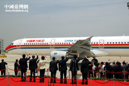 送行人員揮手送別中國國民黨主席吳伯雄一行。(攝影:中國臺灣網 田云鵬)
