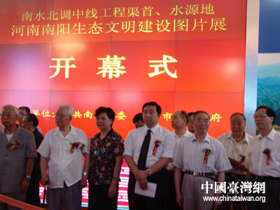 中國臺灣網6月25日北京消息 今上午,作為中華民族水源地之一,同時也是南水北調中線工程渠首的河南省南陽市在北京舉辦了生態文明建設大型圖片展的開幕式。國家發改委、水利部、農業部、國家林業局等部委的領導,河南籍在京專家學者,河南省有關單位的領導及各界朋友共200余人出席了開幕式。河南南陽市市長朱廣平主持開幕式。