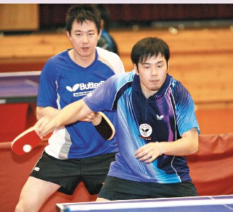 雖然蔣、張組合近7年來只有一座雙打冠軍進袋,但其實2002年以前,兩人堪稱中國臺北乒乓球隊“黃金男雙”,曾經登上男雙排名首位,之后蔣澎龍改與莊智淵搭檔,“黃金男雙”拆伙一拆就是4年,去年兩人為了北京奧運再聚頭。