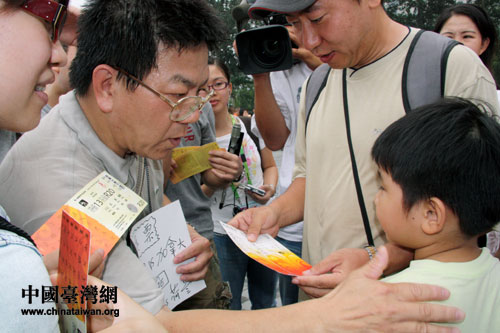 中國臺灣網(wǎng)8月13日北京消息 “票沒有白換啊,5:0大勝荷蘭!”在五棵松棒球場出口處,記者再次見到臺灣來的陳裕輝先生。而2個多小時前,他還在焦急地為能夠進入到中華臺北棒球隊比賽場地而舉著牌子四處找人換票。