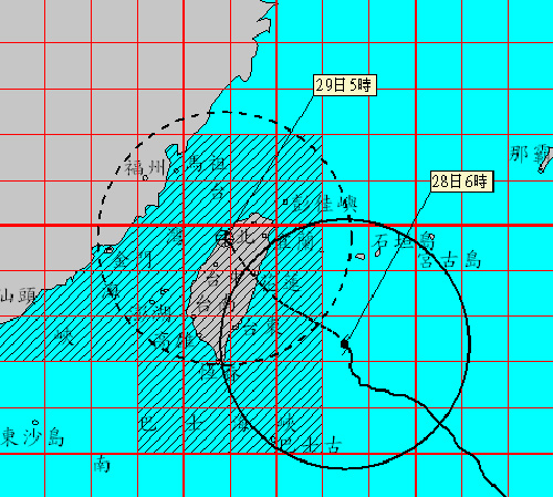 臺(tái)風(fēng)中心凌晨5時(shí)在鵝鑾鼻東方約280公里海面,暴風(fēng)圈在臺(tái)灣東南部陸地邊緣,正進(jìn)入臺(tái)灣東南部及東部陸地。吳德榮表示,受到地形影響,昨晚臺(tái)風(fēng)一度往西,凌晨轉(zhuǎn)為偏北,移動(dòng)路徑呈現(xiàn)蛇行;臺(tái)風(fēng)移動(dòng)速度減慢,將會(huì)提高對(duì)臺(tái)灣陸地的影響程度。預(yù)測(cè)今天花蓮平均風(fēng)將達(dá)14級(jí),最大陣雨可達(dá)17級(jí),比前次森拉克臺(tái)風(fēng)為臺(tái)灣東部帶來的14級(jí)風(fēng)更強(qiáng)。