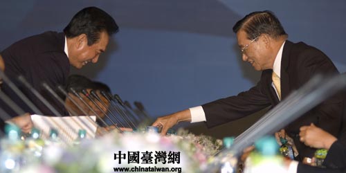 中國(guó)臺(tái)灣網(wǎng)10月4日臺(tái)北消息 海協(xié)會(huì)會(huì)長(zhǎng)陳云林與;鶗(huì)董事長(zhǎng)江丙坤4日9時(shí)開(kāi)始舉行會(huì)談,這是兩會(huì)領(lǐng)導(dǎo)人首次臺(tái)北會(huì)談。(田云鵬)