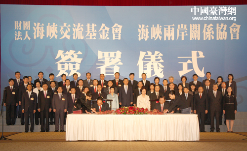 上午舉行會談,下午進行簽約,兩岸兩會協商效率之高,成果之多,令人感佩。4日晚,;鶗麻L在招待海協會會長陳云林的酒會上有感而發:兩會在短短半年時間內簽署多達六項惠及兩岸同胞的協議,取得了圓滿豐碩的成果。
