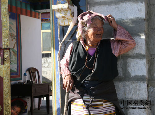 生活在小區內安詳曬太陽的藏族阿嬤