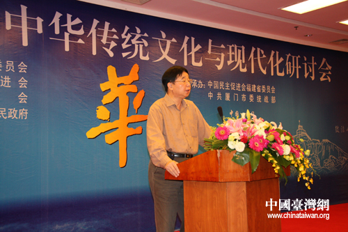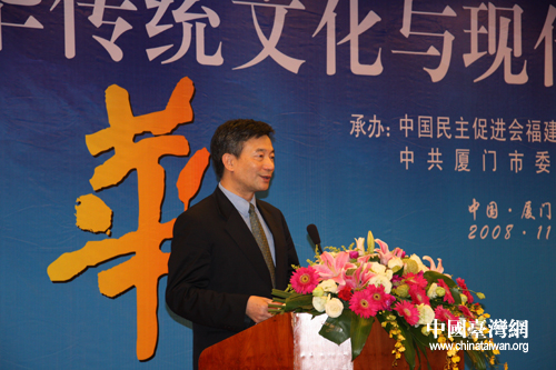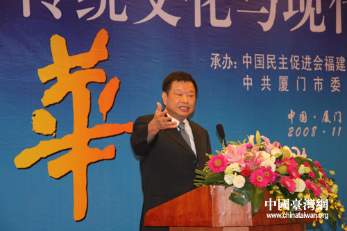 國民黨中常委、中華兩岸文化經濟協會理事長廖萬隆在閉幕式上致辭。他以國民黨中央委員會的名義和廈門市榮譽市民的身份,向與會的兩岸專家學者表示敬意和歡迎。他從300年前祖先從漳州到臺灣討生活、300年后自己從臺灣來廈門開創事業的歷史談起,激動地表示,中華民族幾千年流傳下來的文化倫理是中華民族實現現代化的精神動力。傳統文化要和現代化結合起來,使兩岸共享經濟繁榮成果,社會族群和諧。