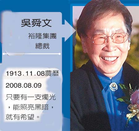 臺灣裕隆集團已故總裁吳舜文(臺灣《聯合報》圖片)