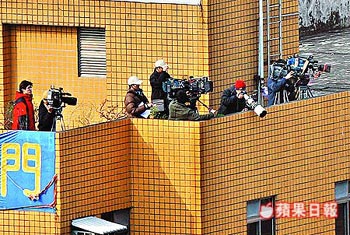 為了捕捉陳水扁放風畫面,臺北看守所旁邊建筑高處聚集了大批記者。來源:臺灣《蘋果日報》