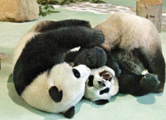 今天是臺灣春節假期最后一天,臺北木柵動物園涌進看大熊貓人潮,圖為團團、圓圓快樂地在一起玩。來源:臺灣《聯合晚報》