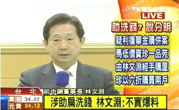 中國(guó)臺(tái)灣網(wǎng)2月16日消息 據(jù)臺(tái)灣“TVBS”報(bào)道,臺(tái)“中鋼”前董事長(zhǎng)林文淵在陳水扁家弊案中究竟扮演什么角色?林文淵本人今日上午10點(diǎn)召開記者會(huì),針對(duì)外界疑問(wèn)一一說(shuō)明。