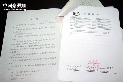 荊州市疾病預(yù)防控制中心向記者出示送檢“問題水”的檢驗(yàn)報(bào)告