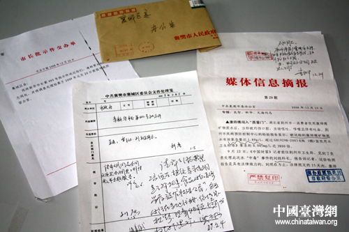 襄樊市襄城區(qū)政府辦公室副主任胡章斌,向記者出示針對此事件的媒體信息摘報(bào)、市長批示件交辦單等資料。