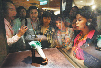據臺灣《聯合報》報道,“安利心印寶島萬人行”首發團昨天上午10點半抵達臺北“故宮博物院”,以各車為單位,由領隊和臺灣導游依序帶領進入。在聽完簡單介紹后,許多團員紛紛涌進玉石展廳,觀賞著名的“翠玉白菜”和“肉形石”。