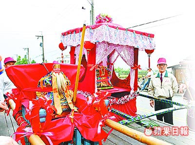 中國臺灣網3月24日消息 據臺灣《蘋果日報》報道,臺灣花蓮縣鳳林鎮大榮一村的金田福德祠供奉土地公,信徒們昨天循古禮為土地公娶妻,準備喜餅、紅包、金牌等物品下聘,還扛著迎親花轎游街,敲鑼打鼓,喜氣洋洋。
