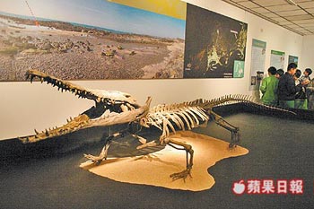 臺灣自然科學博物館昨將古鱷化石復原復制標本捐贈澎湖科教館展出。來源:臺灣《蘋果日報》