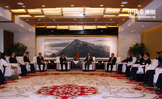 26日下午,中臺辦、國臺辦主任王毅在南京紫金山莊會見了由江丙坤率領的海基會協商代表團一行。 (中國臺灣網 鐘寶華 攝)