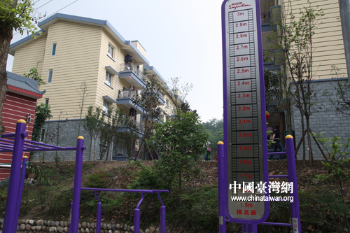 石碑新村擁有完善的配套公共服務(wù)設(shè)施。村口就是公共健身場所,在城市里已經(jīng)非常普及的簡易健身器材如今也在這里為村民服務(wù)。(中國臺灣網(wǎng) 田云鵬 攝)