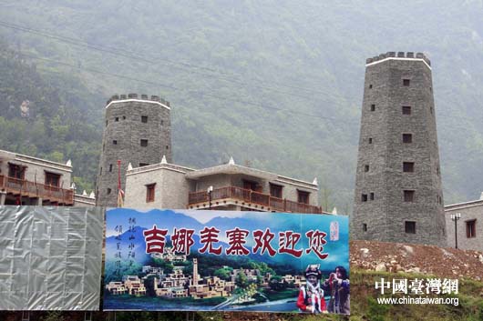 “5·12”地震中被毀的北川“吉娜”羌寨,目前已經完成新建,重獲新生。(中國臺灣網 鐘寶華 攝)