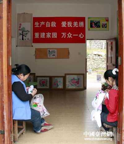 羌家女兒正在北川羌秀培訓班里認真刺繡。(中國臺灣網 鐘寶華 攝)