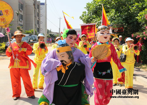 圖為民俗踩街表演上古裝打扮的湄洲民眾。(中國臺灣網記者 張弛 攝)