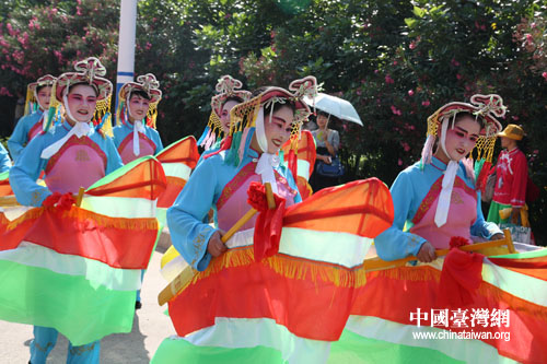 精彩的民俗踩街表演吸引了當地居民的圍觀。(中國臺灣網記者 張弛 攝)