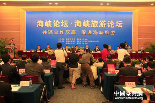 海峽旅游論壇由國家旅游局、福建省人民政府聯合主辦,出席嘉賓包括臺灣觀光協會、臺灣海峽旅行公會總會、臺北縣、嘉義縣、以及澎湖金馬的觀光旅游部門負責人,臺灣雄獅、康富等主要旅行社以及長榮、華航、復興、立榮和華信五家島內航空公司代表。(記者 鐘寶華 許雯)