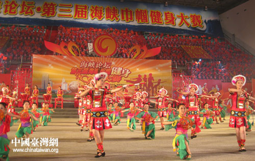 中國臺灣網(wǎng)5月17日泉州消息 海峽論壇·第三屆海峽巾幗健身大賽今天晚上8點在泉州僑鄉(xiāng)體育館隆重舉行。來自福建省9個設(shè)區(qū)市、省直機(jī)關(guān)、省個私協(xié)及臺港澳共14個代表團(tuán)的1000多名女性云集美麗的花園城市泉州,盡展風(fēng)采,聯(lián)誼交流,生動體現(xiàn)了海峽兩岸姐妹一家親的深厚情誼,充分展示了海峽兩岸姐妹熱愛生命,追求卓越的時代風(fēng)采。