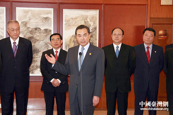 5月25日上午,中共中央臺(tái)辦主任王毅在首都機(jī)場(chǎng)致辭歡迎中國(guó)國(guó)民黨主席吳伯雄一行。中國(guó)國(guó)民黨主席吳伯雄率領(lǐng)中國(guó)國(guó)民黨大陸訪問團(tuán)于25日11時(shí)許乘機(jī)抵達(dá)北京,開始訪問大陸行程。中共中央臺(tái)辦主任王毅到機(jī)場(chǎng)迎接。(中國(guó)臺(tái)灣網(wǎng) 鐘寶華 攝)