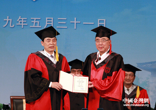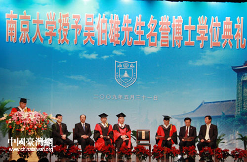 中國臺灣網5月31日消息 今天上午9時15分,南京大學授予中國國民黨主席吳伯雄法學名譽博士學位典禮在南京大學大禮堂舉行。