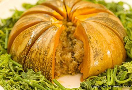南瓜里藏著粉蒸肉,粉蒸肉瘦而不柴,南瓜極甜也不過爛,真的是美好滋味。(圖片來源:臺灣“今日新聞”)